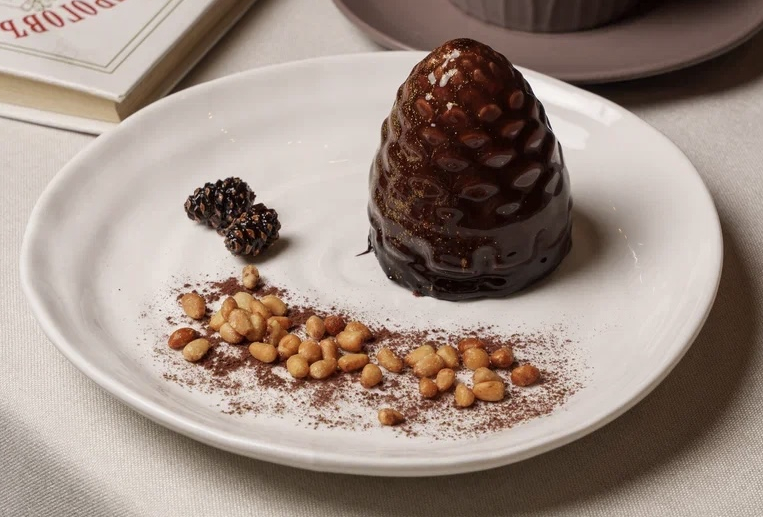 Мусс из молочного шоколада с вишневым конфи